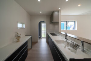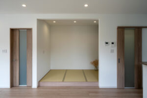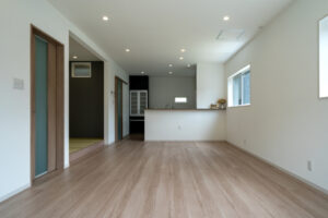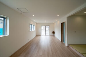 松阪市郷津町 U様邸 2023年5月17日 エムブレイン 松阪市郷津町 U様邸 キッチンの隣接したところに畳コーナーを設置、こどもがどこに居ても見渡せるLDKで子育て世代に人気 建築年度:2025年 1F:87.36㎡(26.43坪) 2F:33.95㎡(10.27坪) 延べ床:121.32㎡(36.70坪)